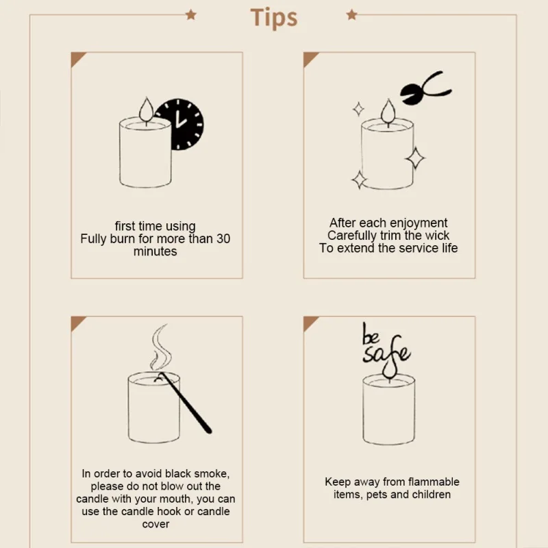 2. جميع شموع شمع الصويا العضوية الطبيعية يمكن أن توفر لك وقت حرق أكثر من 55 ساعة ؛ شمع الصويا له خصائص الاحتراق النظيف والبطيء ، والذي يمكن أن يطلق ببطء زيت عطري لطيف ، وبالتالي الحفاظ على العطر.